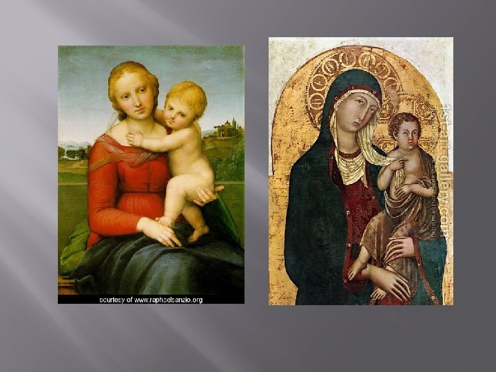 Part I: Art Renaissance art focused on secular topics sometimes Medieval art is only about sacred topics Influenced by Greek and Roman Art Used perspective Subjects look like individuals Artists signed their work and some artists became famous Influenced by study of human anatomy Brighter colors