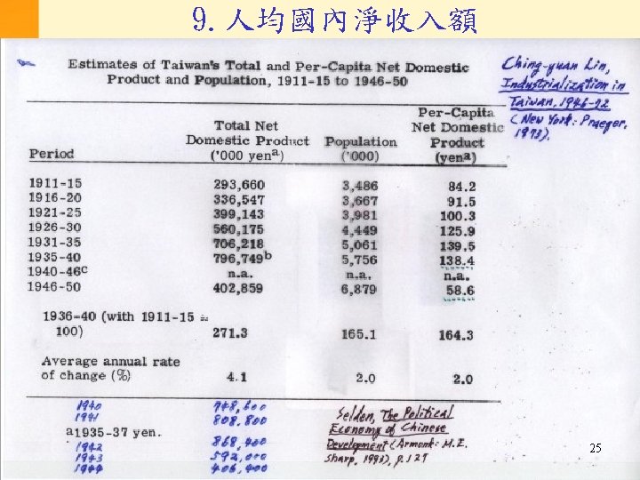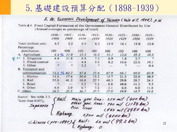 2. 台北與東京之間政府資金流動 (million yen in current prices) 東京 台北* Total government investments Long-term capital imports** 1901 -05 13. 3 28. 8 40. 1 1906 -10 23. 9 45. 7 50. 4 1911 -15 29. 0 67. 8 54. 6 1916 -20 0 84. 8 173. 0 1921 -25 0 110. 7 186. 3 1926 -30 0 121. 7 153. 3 1931 -35 -17. 1 143. 2 14. 0 1936 -38 -64. 8 234. 6 -18. 1 17