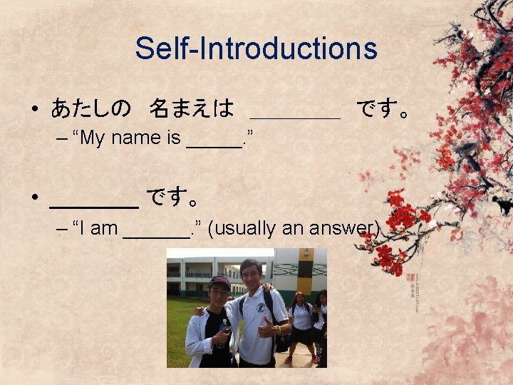 Hanafuda • Hanafuda is a traditional Japanese card game. • The winner tries to achieve a combination of cards called “yaku. ” • Cards from show: – あか に よろしい (obvious goodness) – かす (trash) – ぱいきち (hand meaning “one that shines above all else.