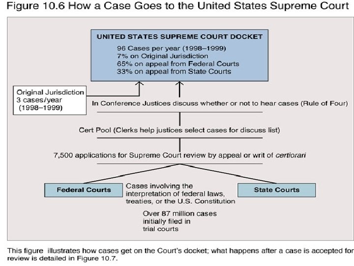 How Supreme Court Decisions are Made Case on the Docket Approx 95 Justices Conference Cases discussed Votes taken Opinion Assigned Briefs and Amicus Briefs submitted Opinions Drafted and Circulated Oral Argument Opinions Announced