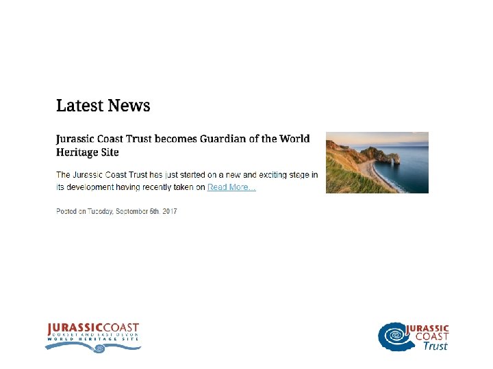 Who’s been looking after it? 2001 – 2017 Jurassic Coast Team ◦ Hosted by Dorset County Council ◦ Supported by Dorset and Devon CCs, Natural England, Environment Agency… and others ◦ Many staff involved over that period – our thanks to all
