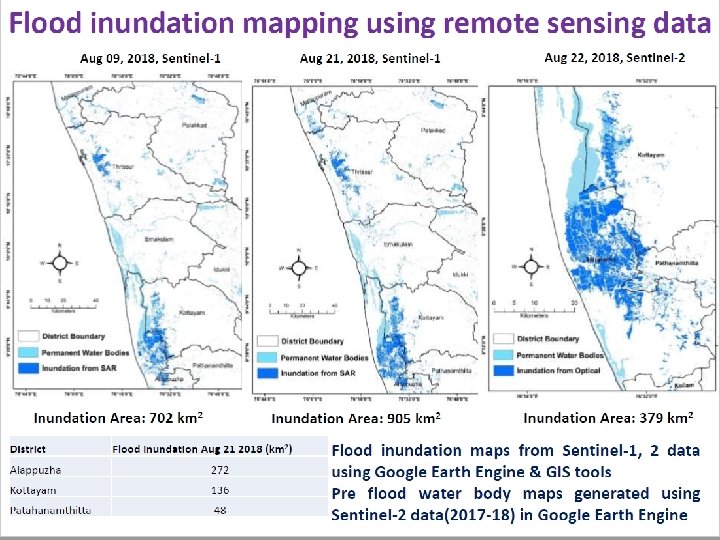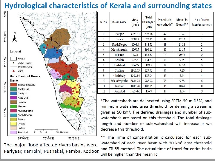 Rainfall over Kerala and associated large scale flooding Rainfall over Kerala so far during southwest monsoon season 2018 (1 st June to 20 th August 2018) has been exceptionally high. • Kerala received 2377. 1 mm against a normal of 1676. 3 mm (above normal by 42%). • The rainfall over Kerala has been in general above normal throughout the season. The rainfall over Kerala during June, July and August (1 -20 August) has been 15%, 18% and 156% above normal respectively. • The exceptionally high rainfall in August, 2018 so far has been due to two consecutive active spells, viz. , 8 th – 10 th August and then during 14 th – 17 th August. Water level Storage Scenario in reservoirs • Under this rainfall scenario, by the end of July, 2018, in all the major 35 odd reservoirs in Kerala, the storage was close to the Full Reservoir Level (FRL) and had no buffer storage to accommodate the heavy inflows from 8 th August (source: Kerala State Electricity Board website, http: //sldckerala. com/index. php? id=7). • The continued exceptionally heavy rainfall in August in the catchment areas had compelled the authorities to resort to heavy releases downstream into the rivers leading to widespread flooding. • Taking an example of the largest reservoir of Kerala, according to State Load Despatch Centre (SLDC) of Kerala State Electricity Board website, the first water release from the largest Reservoir in Idukki was done on 10 th August. • The water release continued thereafter with about 50 -70 mcm per day till 14 th August. However it peaked up on 15 th August to 390. 5 mcm per day followed by 126 and 115 MCM per day on 16 th and 17 th August leading to devastating flood in downstream areas of the dam. •