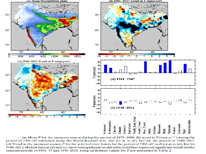 Strong Linkage Between Precipitation Intensity and Monsoon Season Groundwater Recharge in India, Volume: 45, Issue: 11, Pages: 5536 -5544, First published: 31 May 2018, DOI: (10. 1029/2018 GL 078466) Observed changes in precipitation characteristics over India (1951– 2015). (a) Observed changes (mm) in PPTTotal, (b) PPTLow, and (c) PPTHigh. (d and e) Area averaged changes in PPTLow for northwest India, NWI and north central India, NCI, and (f) area averaged changes in PPTHigh in SI. All changes were estimated using the nonparametric trend test and Sen's slope method for the period of 1951– 2016. Statistical significance was tested at 5% significance level and p value (in d–f) less than 0. 05 indicates trends were significant.