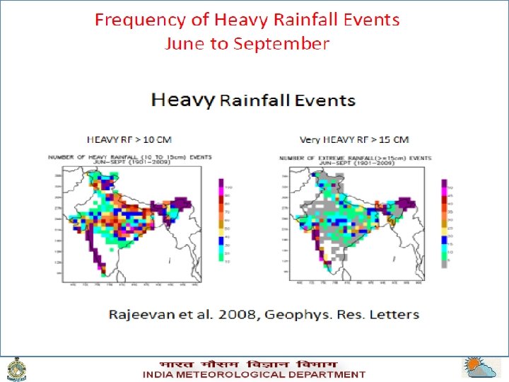 Indian Southwest Monsoon (June to September) Mean % of Heavy rainfall days Mean % of Very heavy rainfall days 8