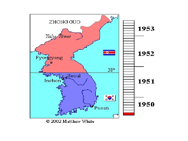 • The Chinese launched a counter-offensive that pushed the UN forces back across the 38 th Parallel. • The Soviet Union materially aided the North Korean and Chinese armies. • The active stage of the war ended on 27 July 1953, when the armistice agreement was signed. • The agreement restored the border between the Koreas near the 38 th Parallel and created the Korean Demilitarized Zone (DMZ) a 2. 5 -mile wide buffer zone between the two Koreas. • Minor outbreaks of fighting continue to the present day.