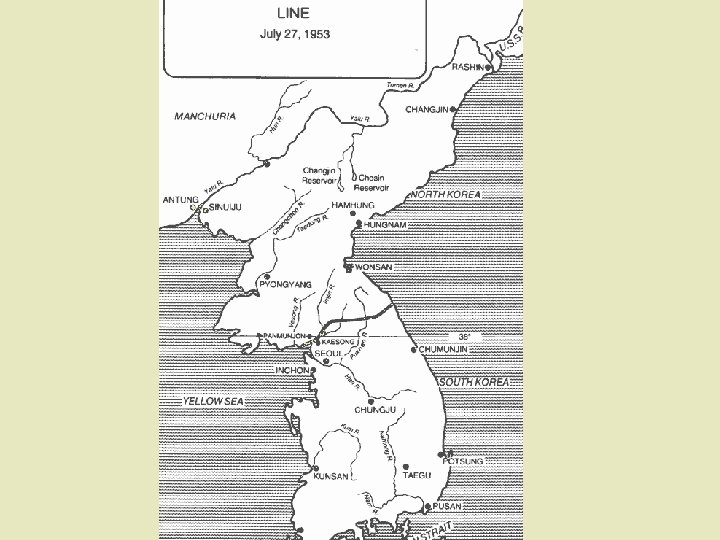 July 27, 1953: Peace Treaty signed at Panmunjom © 38 th parallel reset as boundary between communist North and anticommunist South. ©Cold War tensions continue unabated. ©Gen. Mark W. Clark says he has "the unenviable distinction of being the first US Army commander to sign an armistice without victory. "