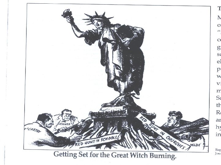 Joseph Mc. Carthy • Republican Senator from Wisconsin • “The List” • Accused U. S. Government Officials of Being Communists • Caused a “Witch Hunt” in America for Suspected Communists