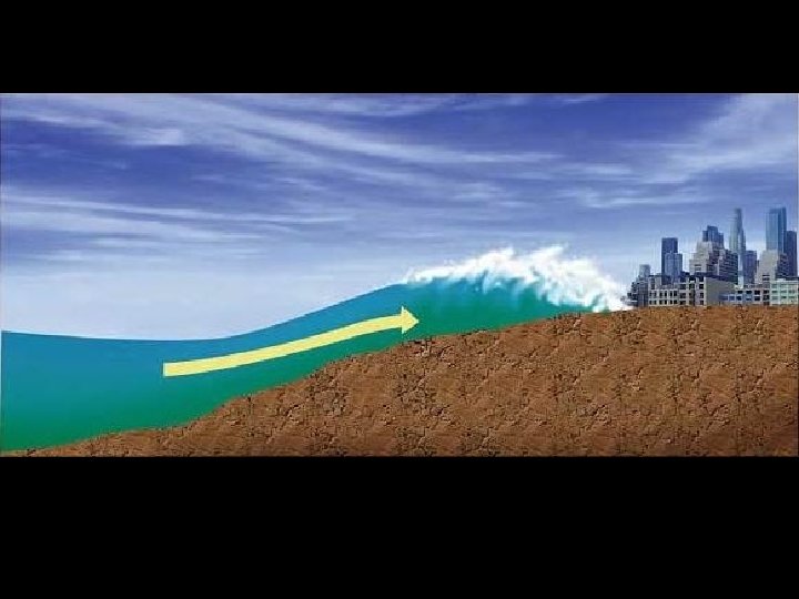 v. Tsunamis • Under water earthquakes cause the water to shake forming large waves. • Seismic sea waves • Wave crests can reach 30 m in height by the time it reaches shore.