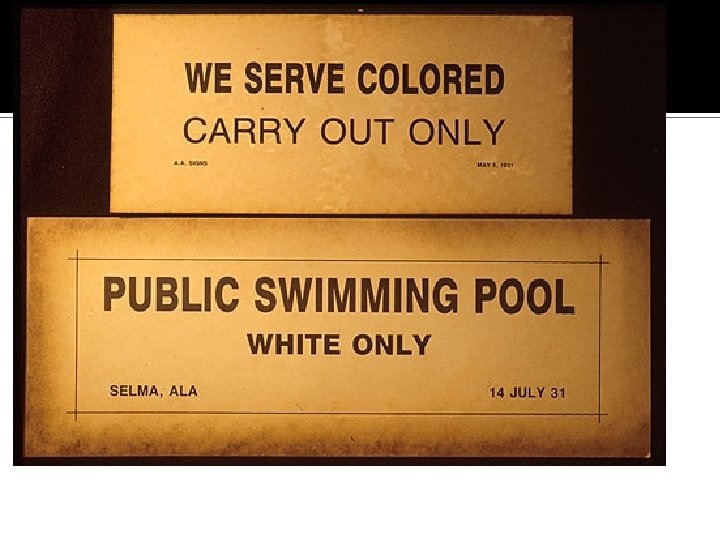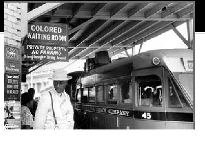 Plessy v. Ferguson, 1896 Major setback for blacks Segregation legal as long as separate facilities provided Led to the Southern belief of “Separate but Equal”