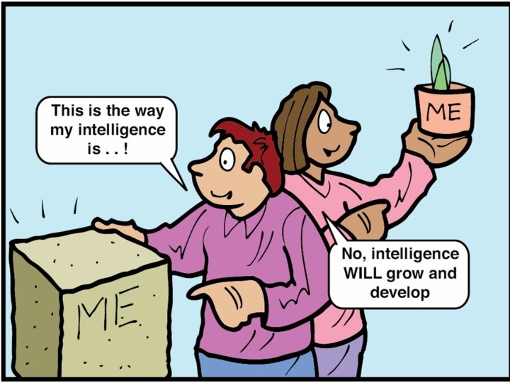 Effects of the Mindsets on Achievement Growth Mindset Fixed Mindset Challenges Embrace Challenges Avoid Challenges Obstacles Persist in the face of setbacks Get Defensive or Give up Easily Effort = Path to mastery Effort = Only for ‘ungifted’ Criticism Learn from Criticism Ignore Negative Feedback Success of Others Find lessons and Inspiration Feel Threatened Desire to LEARN Desire to LOOK SMART