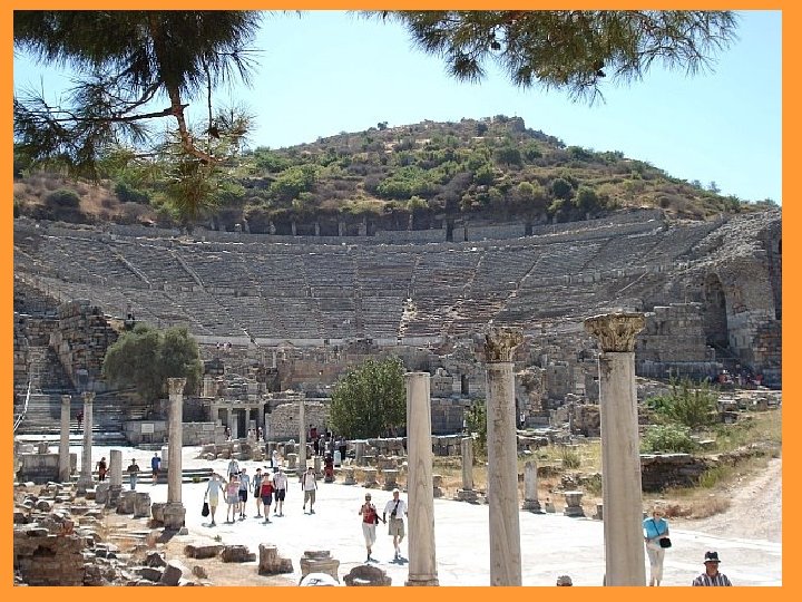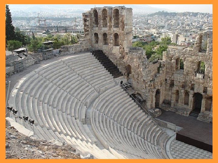 Theater Grew out of festivals dedicated to Dionysus and developed into stories that were acted out Types of plays first developed by the Greeks were Comedy and Tradgedy Plays were performed at festivals and became competitions Only male actors but women could watch Actors wore masks to show gender, age & mood Theater was carved into a hillside