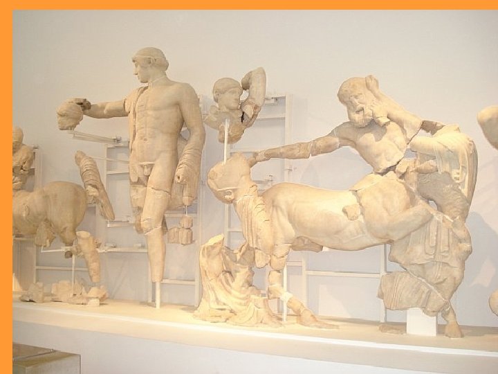 Statues • During the Classical period, Greek sculptors focused their energies on naturalizing effects on the human figure • Greeks used calcite limestone to make their statues • White marble statues are the most commonly associated states to Greek art.