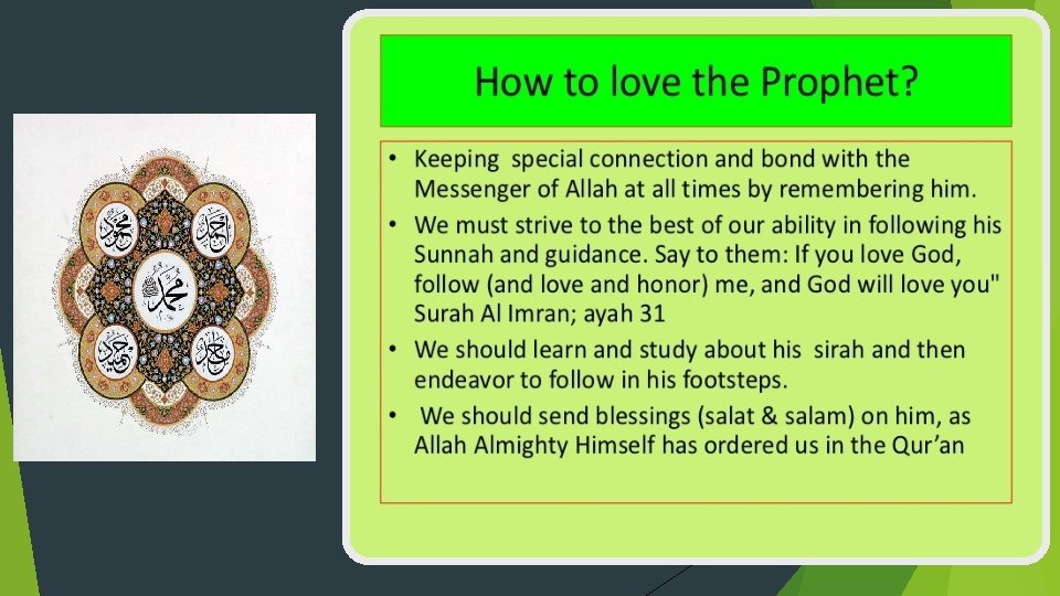 HOW CAN YOU SHOW THAT YOU REALLY LOVE PROPHET MUHAMMAD(SAW)? OBEY ALLAH RESPECT YOUR PARENTS SMILE AT OTHERS PRAY ON TIME HELP THE NEEDY BE KIND TO FRIENDS AND FAMILY