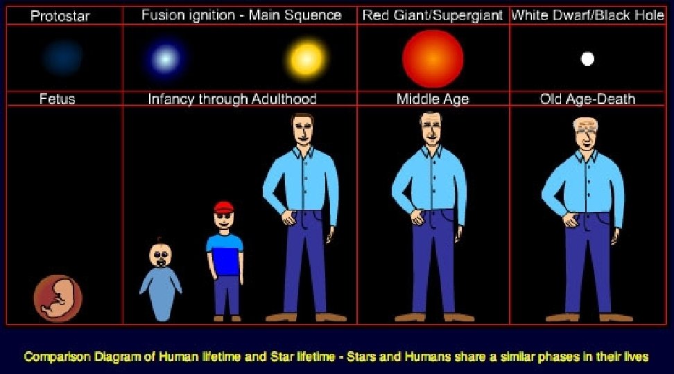 Small & Medium Mass Stars Planetary Nebula Red Giant Small Star White Dwarf Neutron Star Protostar Interstellar Cloud High Mass Stars Black Hole Large Star Red Super Giant Supernova