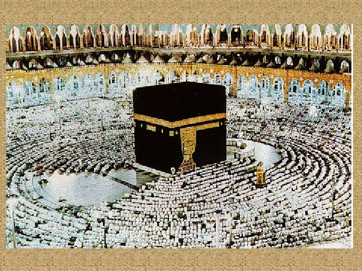 Mecca • At the time of Muhammad, Mecca was already a center of religious pilgrimage. Located in Mecca was a black meteorite that had fallen to earth long before Muhammad’s time. It was venerated because it was believed to have been sent from heaven. A squarish shrine had been constructed to contain it, called the Kabah (‘cube’).