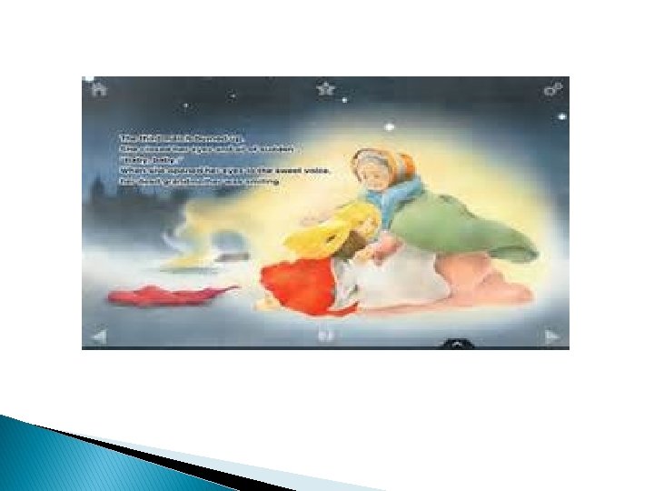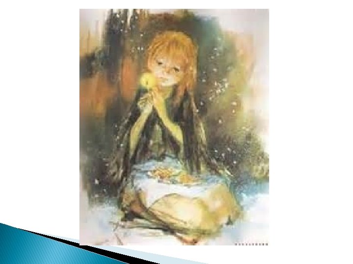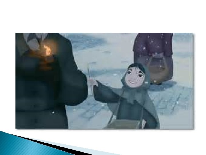 � The child still sat, in the stiffness of death, holding the matches in her hand, one bundle of which was burnt. “She tried to warm herself, ” said some. No one imagined what beautiful things she had seen, nor into what glory she had entered with her grandmother, on New Year's day.