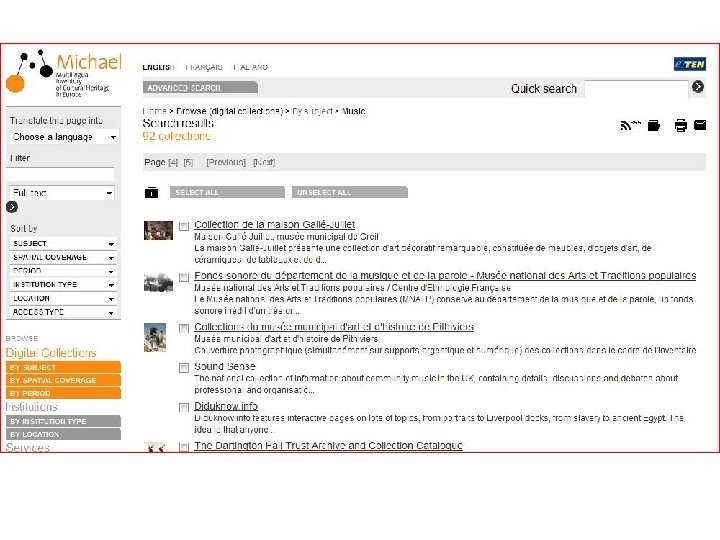 The European Digital Library MICHAEL is a powerful tool for: • • • Discovering digital content from local and regional institutions Knowing who has what Identifying content to build themes