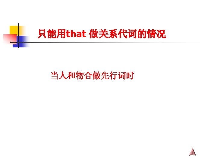 难用的 whose Join the following pair of sentences. The teacher praised the student. His English is the best in our class. The teacher praised the student whose English is the best in our class. whose =the student’s 关系词whose实际上是先行词的所有格