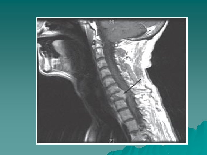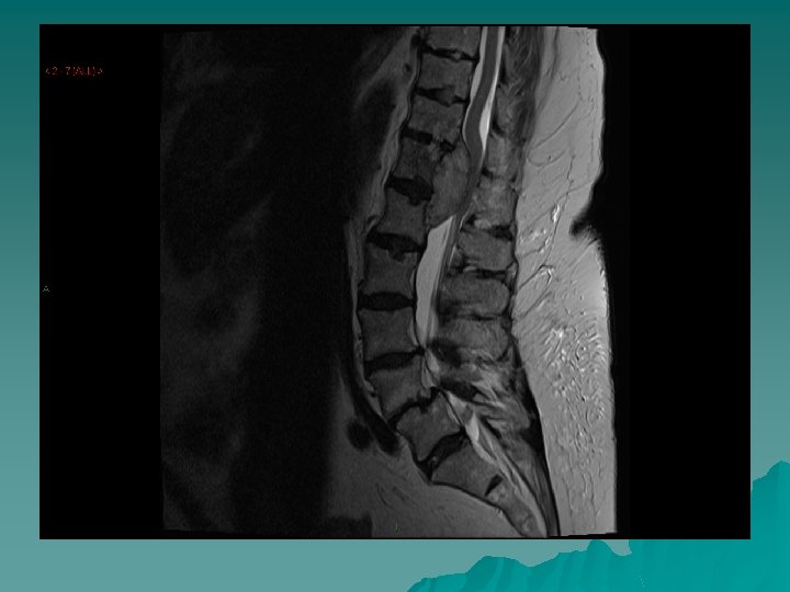 Presentation u Depends u Radicular on level (77% in T spine) (1) back pain in 85 -95% u Worsened by lying flat, weight bearing, coughing and sneezing, relieved by sitting 1. Levack P, Graham J, Collie D, Grant R, Kidd J, Kunkler I, Gibson A, Hurman D, Mc. Millan N, Rampling R, Slider L, Statham P, Summers D (2001) A prospective audit of the diagnosis, management and outcome of malignant spinal cord compression. Clinical Resource and Audit Group (CRAG) 97/08