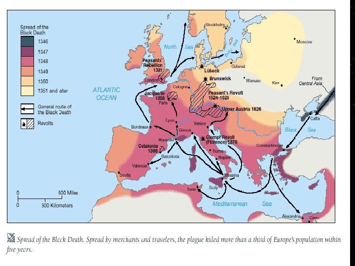 The Plague FBlack Death FSpread by rats, ticks from trading ships in the early 14 th century FKilled half the population of Europe FCame back in waves