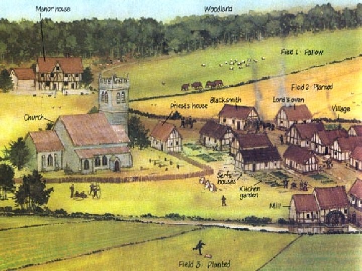 Manorial System n The manorial system produced the food for people to eat: –Lords allowed peasants to live on their land in exchange for a portion of the food they grew –Peasants agreed to pay “rent” to the nobles in exchange for shelter & protection n Peasant life was difficult: they were dependent upon the lords & got lots of diseases