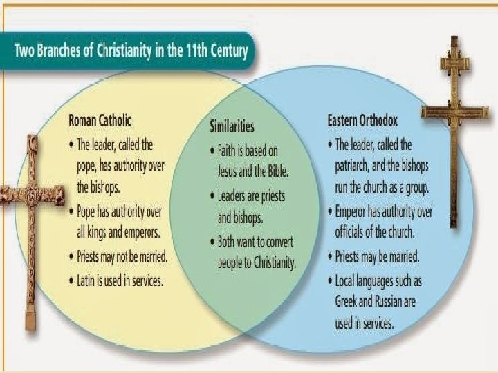 II. Byzantine Christendom: Building on the Roman Past B. The Byzantine Church and Christian Divergence 1. Caesaropapism: While in Western Europe there was an intense competition between political and religious authority, in the east, the Byzantine emperor was head of the church and the state. 2. Intense internal theological debates: Within the Orthodox faith, there were intense and complicated debates over the nature of Jesus and his relationship to the Trinity and whether or not icons should be used as representations of God and Jesus. Many of these disputes resulted in violence within Byzantium. 3. Impact of the Crusades: When the Crusades started in 1095, things went from bad to worse as Catholic troops behaved poorly, if not violently, in Byzantine lands. The Fourth Crusade of 1204 plundered Constantinople and held the city for several decades. Thus, the Crusades marked an irreparable divide between east and west. https: //www. youtube. com/watch? v=p 7 c Uuxh 3 CYY (East/West Christianity)