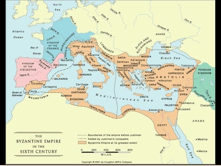II. Byzantine Christendom: Building on the Roman Past A. The Byzantine State 1. A smaller but more organized Roman Empire: Byzantium was really the eastern section of the Roman Empire, becoming the sole heir to Rome after it fell in 476. While Byzantium never regained control over the western Mediterranean (except for a brief period under Emperor Justinian, 527– 565) and was much smaller in terms of territory, it had a strong administration and could mobilize its wealth for warfare. 2. Wealth and splendor of the court: Sitting astride the trade routes between the East and West, the empire was extremely wealthy. The empire had a decidedly Greek character but also influences from Persian court ceremonies, such as high officials in silk robes. Political power was centralized in the figure of the emperor who was celebrated in the court with a mechanical throne that rose above his visitors and mechanical lions that roared.