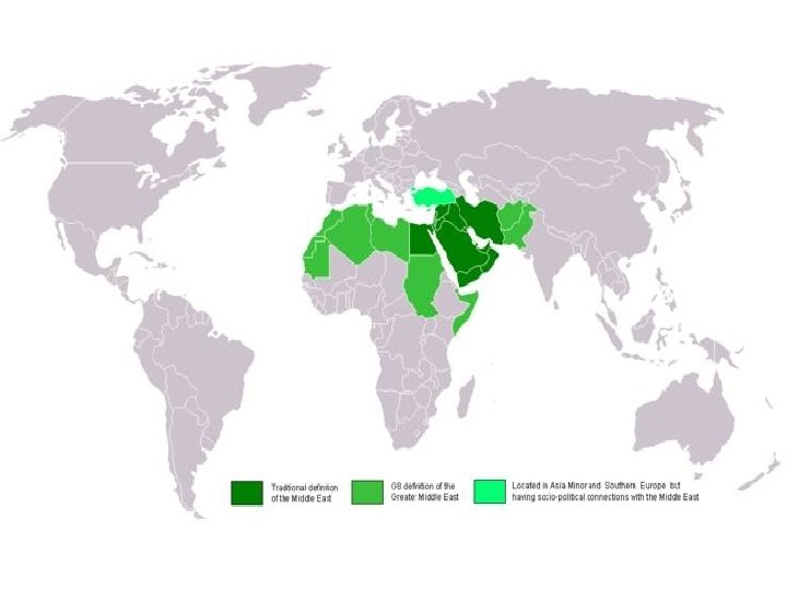 A. The Land continued 2. Major Regions a. Northern Tier * Turkey to Iran b. Arabian Peninsula 1) Oil 2) Birthplace of Islam c. Fertile Crescent d. Nile Valley e. Pictures Next Page