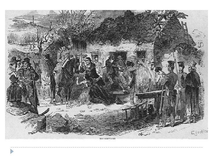 Skibbereen & the effects of the Potato Blight 1841 – 1851, Irish census data showed population fell from 8. 2 million to 6. 6 million. 1847 – 1852, there were over 90, 000 evictions. Police and soldiers were used by the government. The crisis was used as an excuse by many landlords to take away people’s homes.