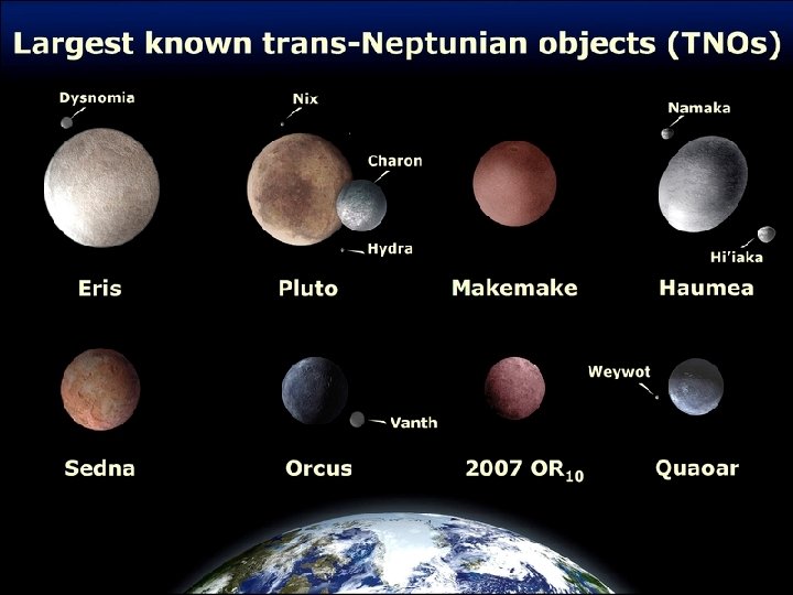 The Solar System is also home to a number of regions populated by smaller objects. The asteroid belt, which lies between Mars and Jupiter, is similar to the terrestrial planets as it is composed mainly of rock and metal. Beyond Neptune's orbit lie the Kuiper belt and scattered disc; linked populations of trans-Neptunian objects composed mostly of ices such as water, ammonia and methane. Within these populations, five individual objects, Ceres, Pluto, Haumea, Makemake and Eris, are recognized to be large enough to have been rounded by their own gravity, and are thus termed dwarf planets. In addition to thousands of small bodies in those two regions, various other small body populations, such as comets, centaurs and interplanetary dust, freely travel between regions.