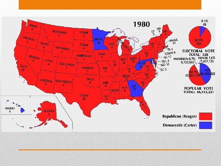 • Ronald Reagan, former governor of California elected President in 1980. • As a conservative, Reagan believed that the federal government should have a smaller role in American life. • Pursued an economic policy critics called “Reaganomics”; included tax breaks and budget cuts. • “Reaganomics” (sometimes referred to as supply-side economics or “trickle-down” economics) is generally thought to have benefitted wealthier Americans while penalizing the poor. Ronald Reagan