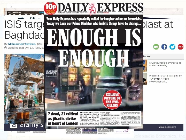 ISIS Terrorist Attacks • Many, many more attacks have occurred and killed huge numbers across the Middle East, but the ones that target European and US civilians have received the most coverage. 1. Paris Attacks - November 2015 • Gunmen attack restaurant and nightclub in Paris killing 130 and wounding 400 2. San Bernardino Shootings – December 2015 • Husband wife attack a government center in California killing 14 and injuring 22 • Not directly tied to ISIS, but influenced by ideas and carried out based on ISIS beliefs 3. Brussels Airport Attack – March 2016 • Three suicide bombers in Belgium kill 32 at the airport and train station in Belgium’s capital 4. Pulse Nightclub Shooting – June 2016 • Omar Mateen, a 29 -year-old security guard, killed 49 people and wounded 53 others in a terrorist attack/hate crime inside Pulse, a gay nightclub in Orlando, Florida 5. Bastille Day Attack (Nice, France) – June 2016 6. Berlin Christmas Market – December 2016 7. Ariana Grande Concert (Manchester, England) – May 2017