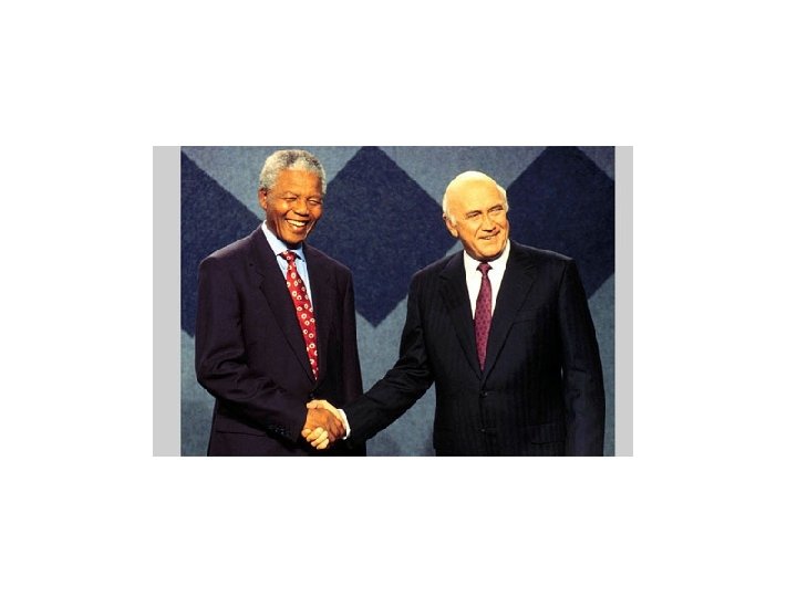 • The world condemns S. Africa • 1989, new pres. F. W. de Klerk frees Mandela and ends apartheid- together, they return S. Africa to majority rule • 1994 - Nelson Mandela is elected as the first black president of South Africa