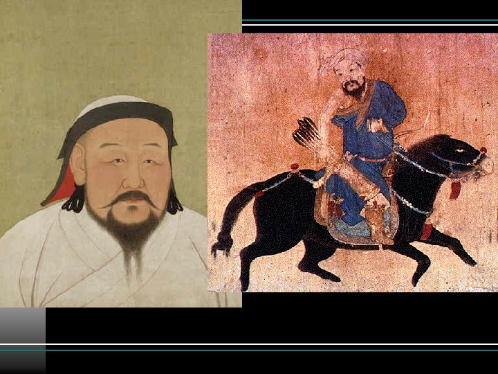 Chinggis Khan (Temujin) • Mongol tribes in constant warfare • meritocracy • Teen Temujin took title of universal ruler (1206) • Ravaged Asia for 21 years