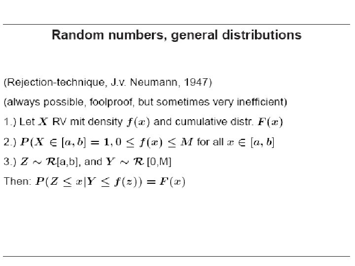 Example: Normal (Gaussian) distribution Cumulative distr. function Inverse cumul. distr. fct. best format of storing distributions for Monte Carlo applications: „Inverse cumulative distribution function F-1(x)“, x uniform [0, 1]
