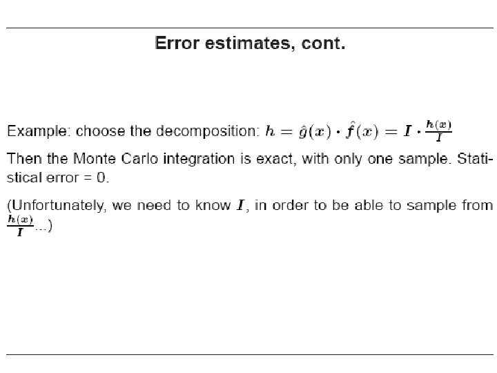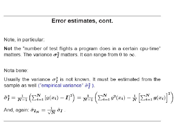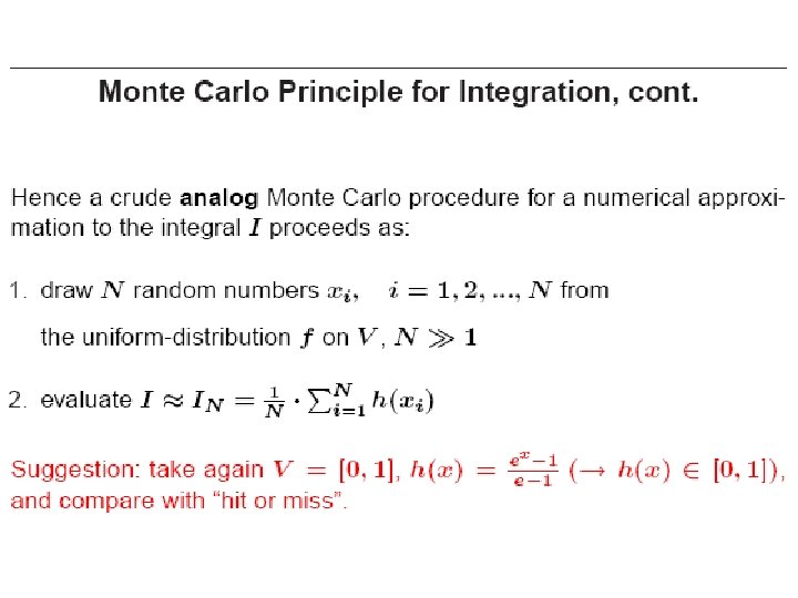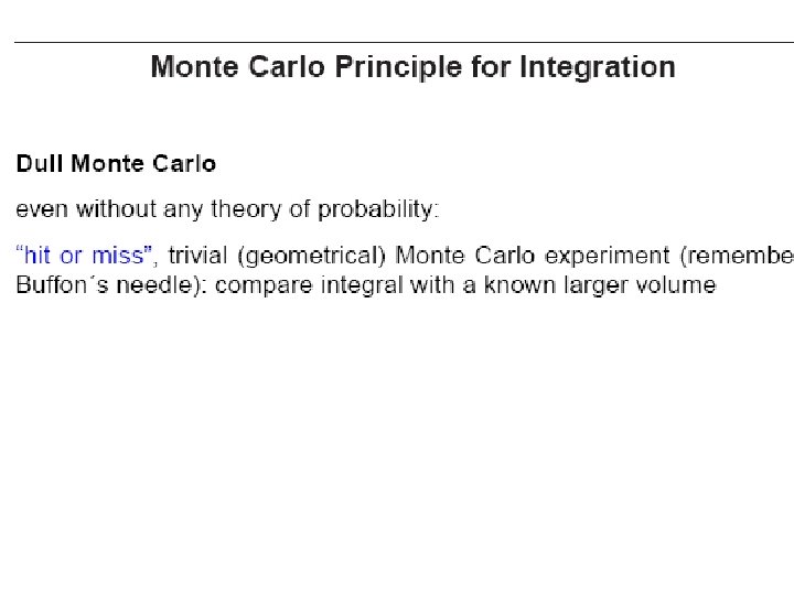 NEXT: Any Monte Carlo estimate can be regarded as a mean value, i. e. an integral (or sum) over a given probability distribution, ususally in a high dimensional space (e. g. of random walks…. ) Generic Monte Carlo: Integration Hence: How does Monte Carlo integration work?
