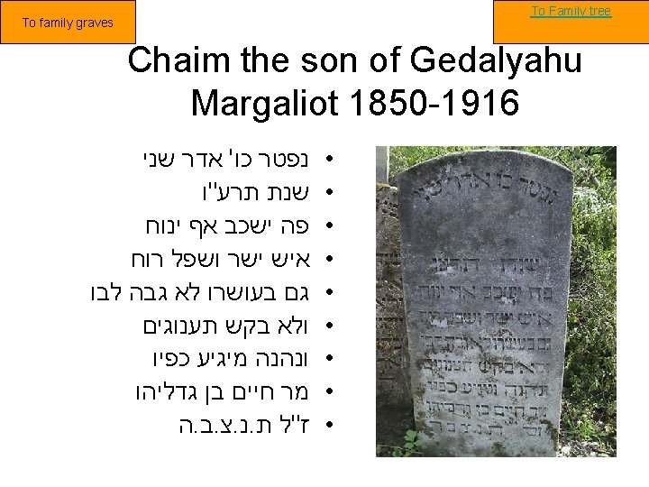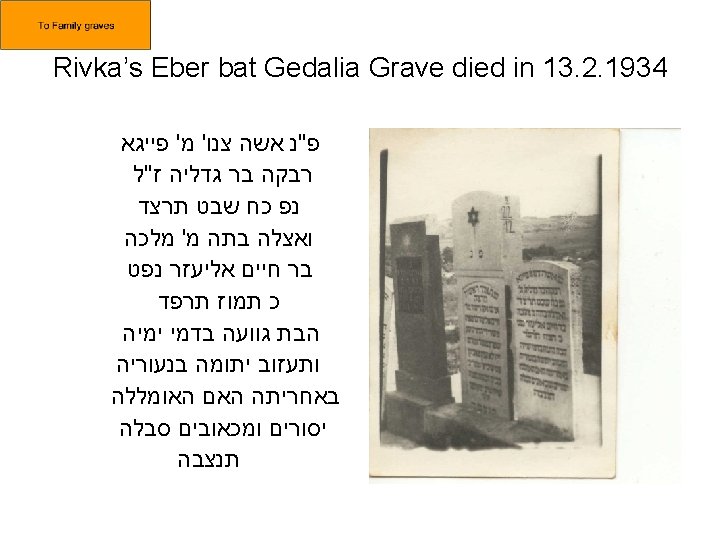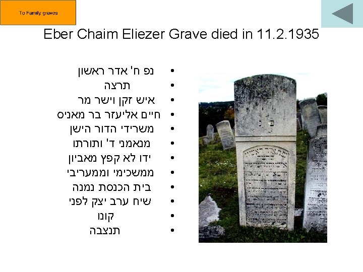 To Eber & Margaliot graves Family (Friedlander & Ebenstein) graves in the Jewish cemetery of Buczacz