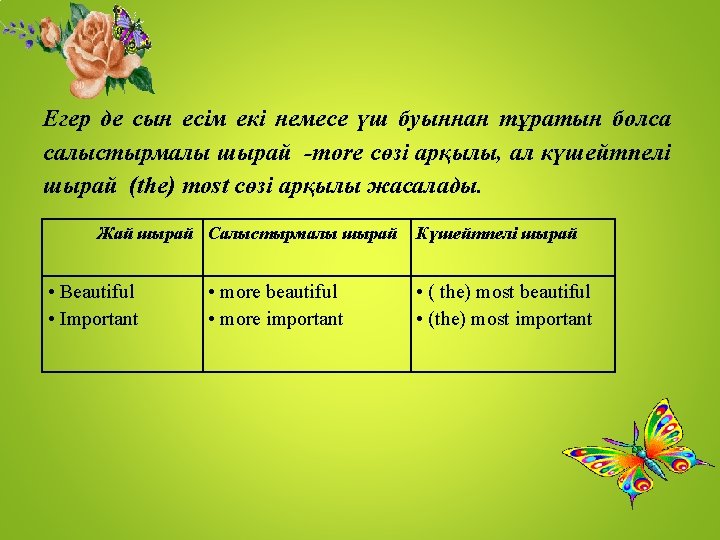 6. He is also…. Person than Paul. A)a polite B) a more polite C) the most polite 7. She has … job of all. A) a difficult B)more difficult C) the most difficult 8. Happiness is …than money. A) important B) more important C)the most important 9. Of the three girls, this one is the… A) pretty B) prettier C) prettiest 10. The coat is …off all. A) an expensive B) a less expensive C) the least expensive