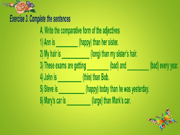 Exercise № 5 Complete the sentences