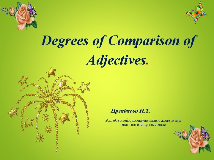 • Exercise 2. Fill in the blanks with the correct comparative and superlative degrees of following adjectives – • foolish ______________ • harmful ______________ • poisonous_______ • valuable ______________ • difficult ______________ • generous ______________10 p