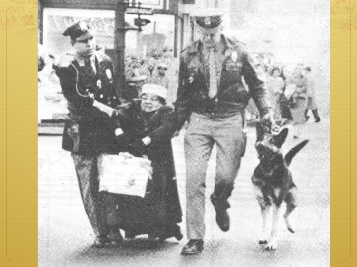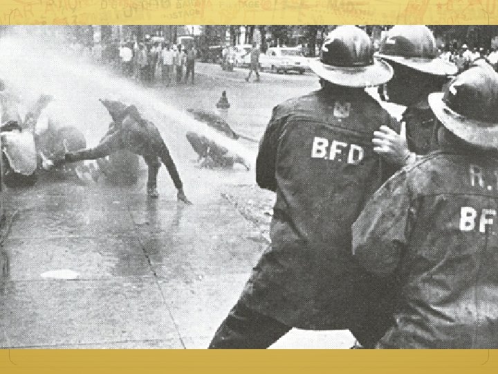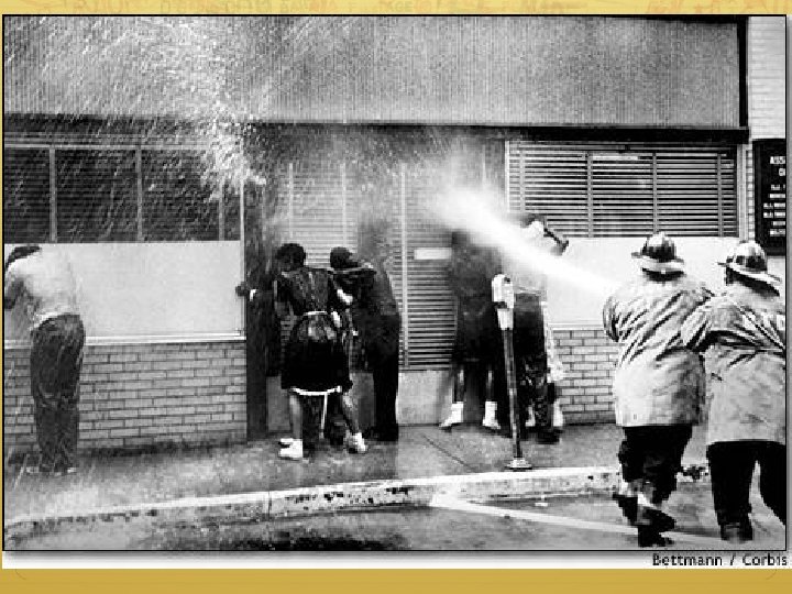 Birmingham In 1963, people began to march demanding desegregation Were arrested for marching without a permit Finally in May, 1000 Birmingham youth marched for equal rights “The Children’s Crusade” Police chief “Bull” Connor responded: Unleashed police dogs on the children Sprayed them with fire hoses with 700 lbs. of pressure