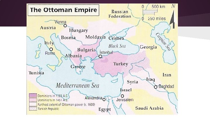 Ottoman Empire The Ottoman Empire was the one of the largest and longest lasting Empires in history. It replaced the Byzantine Empire as the major power in the Eastern Mediterranean. The Ottoman Empire reached its height under Suleiman the Magnificent (reigned 1520 -66), when it expanded to cover the Balkans and Hungary, and reached the gates of Vienna. The Empire began to decline after being defeated at the Battle of Lepanto (1571) and losing almost its entire navy (eventually known as the “Sick Man of Europe”)