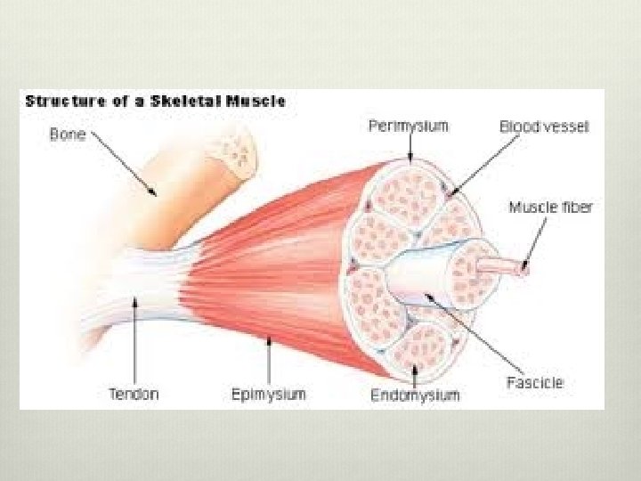 Imagine… v Imagine a muscle fiber as a single stalk of spaghetti v Several stalks of spaghetti are bundled together in a sheath v Those sheaths are also bundled together until you have a bundle of bundles