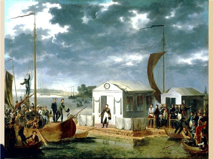 Treaty of Tislit - Russian army defeated at the Battle of Friedland in June 1807 Napoleon meets with Tsar Alexander I on a raft in Tislit - The Treaty of Tislet gives Prussian territory to Westphalia and The Grand Duchy of Warsaw - The Tsar agrees to close ports to Britain - Through establishing satellite states and defeating his enemies Napoleon is now master of Europe. . . except Britain