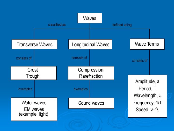 What’s in a Wave? Ø Wave – a rhythmic disturbance that transfers energy through matter or space Ø Carries energy without transporting matter from place to place
