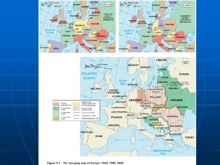 Shapes of States n n n Exclave: small portion of land that is separated from the main state, ie. Kaliningrad/Russia's smallest oblast (region) of Kaliningrad is an exclave located 200 miles away from the border of Russia proper. Kaliningrad was a spoil of World War II, allocated from Germany to the Soviet Union at the Potsdam Conference that divided Europe between the allied powers in 1945. The oblast is a wedgeshaped piece of land along the Baltic Sea between Poland Lithuania, approximately one-half the size of Belgium, 5, 830 mi 2 (15, 100 km 2). The oblast's primary and port city is also known as Kaliningrad. Known as Konigsberg prior to Soviet occupation, the city was founded in 1255 near the mouth of the Pregolya River. The philosopher Immanuel Kant was born in Konigsberg in 1724. The capital of German East Prussia, Konigsberg was the home to a grand Prussian Royal Castle, destroyed along with much of the city in World War II.