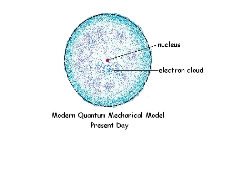 The Quantum Mechanic Model (The Atomic Model Today) 1. Developed by Schrödinger and Heisenberg. 2. Atoms have a dense, positively charged nucleus. 3. Electrons surround the nucleus and are treated as waves. 4. Electrons “live” in the 3 -D atomic orbitals that lie within energy levels of the e- cloud.