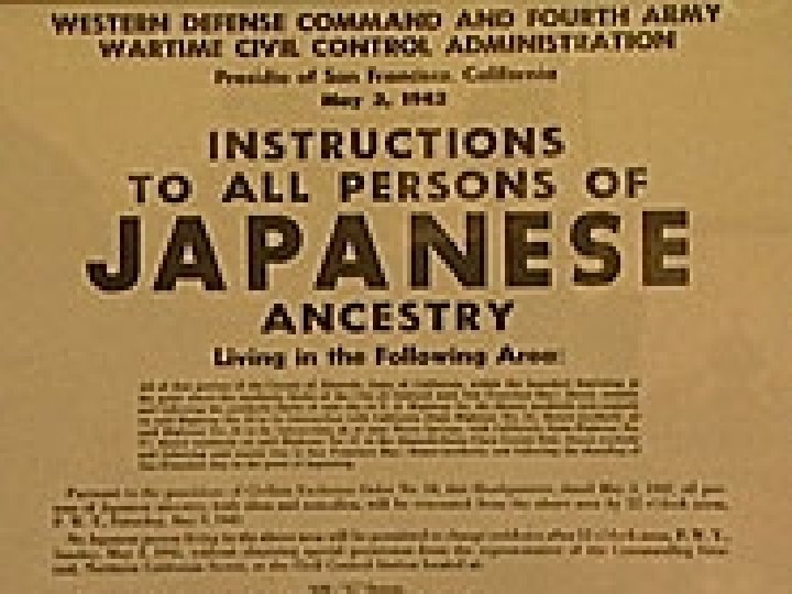 Japanese-American Internment Camps • Internment - forced relocation and imprisonment • 119, 000 Japanese lived in California, Oregon, and Washington • 1/3 of these people born in Japan • the nisei (nee-say) had been born in U. S. • because of strong anti-Japanese feeling government decided to move them