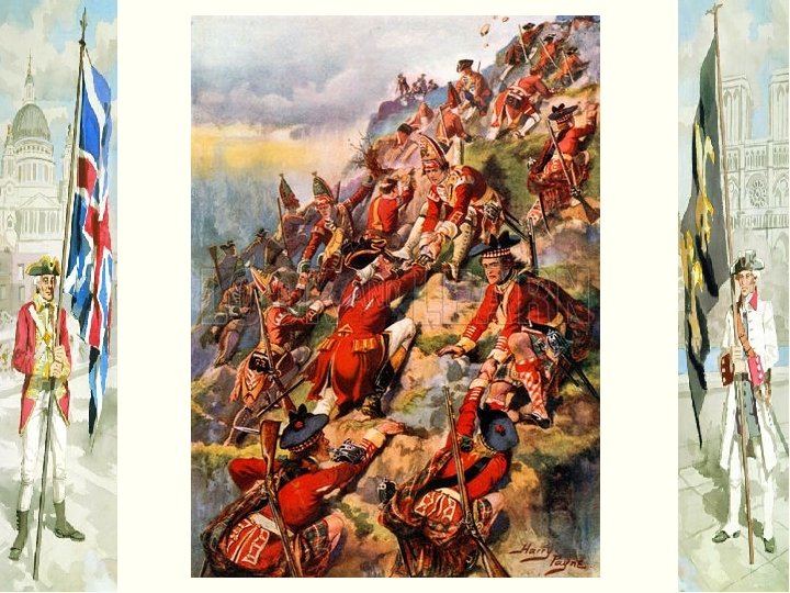 1758 -1761 The Tide Turns for England * Sept 1759, last French strongholds in Quebec and Montreal fell to British-Montcalm wounded and killed at the Battle of the Plains of Abraham