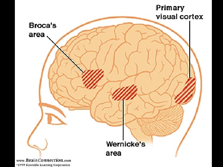 Association Cortex • Broca’s area – language area – grammar and pronunciation – left frontal lobe • Aphasia – speech disturbance related to brain damage • Wernicke’s area – language comprehension – left temporal lobe • Agnosia – inability to identify seen objects